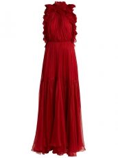 Pleated silk and wool-blend dress